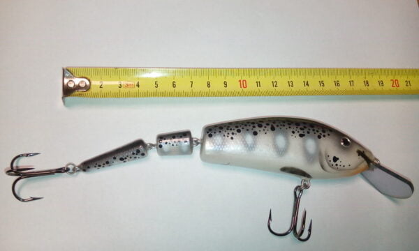 1. VIJAČENJE IN BELIČARJENJE, umetne vabe, voblerjiHand made – ročno delo 3 delni vobler, zelo močna žlica, trnki trojno ojačani mustad, plavajoči, teža cca 35g, vaba ki preseneti vsakega izkušenega sulca!